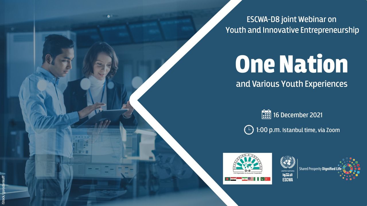 The first ESCWA- D-8 joint Webinar on Youth and innovative entrepreneurship will be held virtually on 16 December 2021 at 01:00 pm -04:00 pm(Istanbul Time)