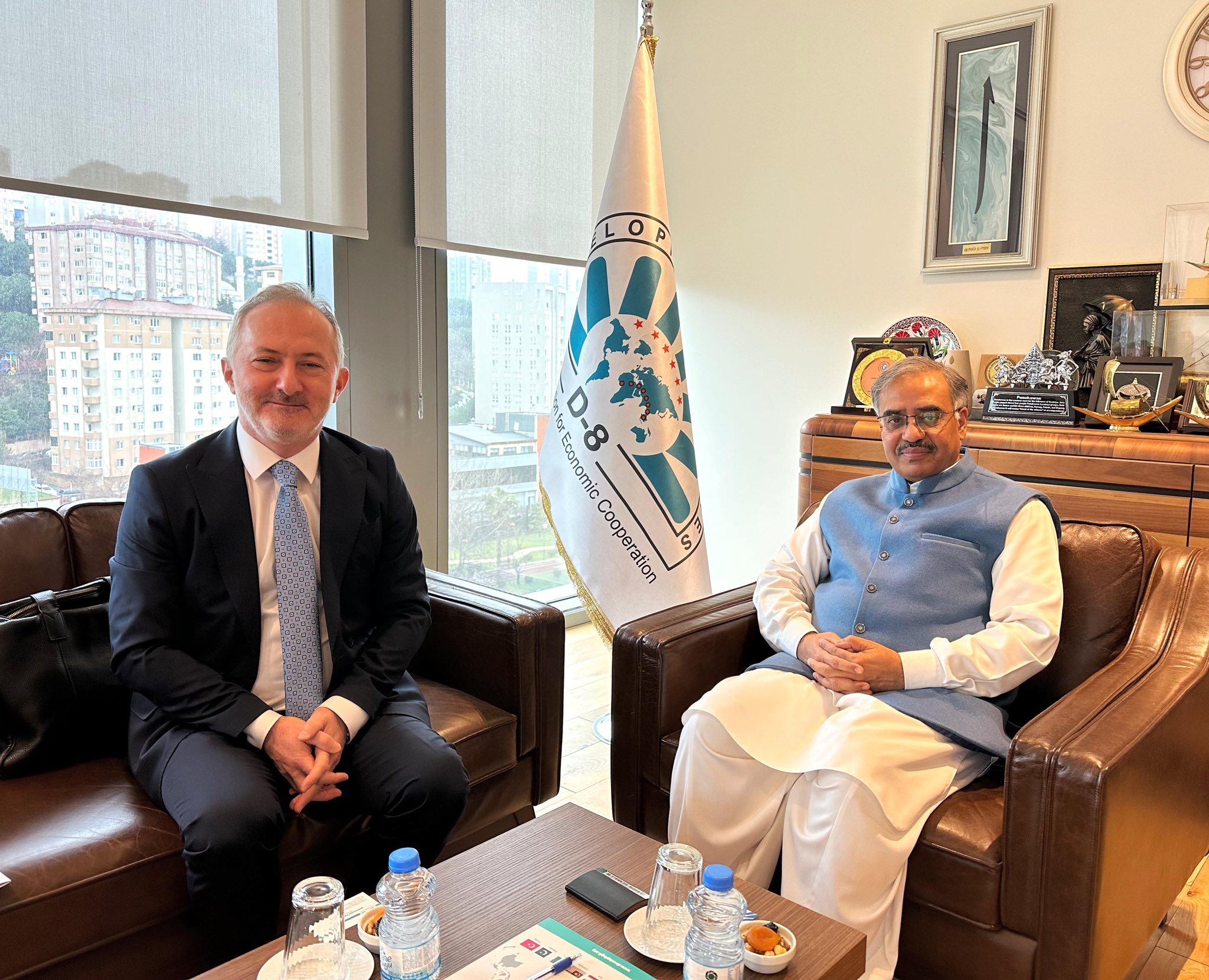 The decision was taken during the meeting between the D-8 Secretary General H.E. Ambassador Sohail Mahmood and the ADFIMI delegation led by its Secretary-General Mr. Ilhami Öztürk. During the meeting, Secretary-General Sohail Mahmood underscored the critical role of development finance institutions in promoting sustainable and inclusive growth across D-8 Member States. He emphasized the importance of operational partnerships that translate policy frameworks into concrete development outcomes.